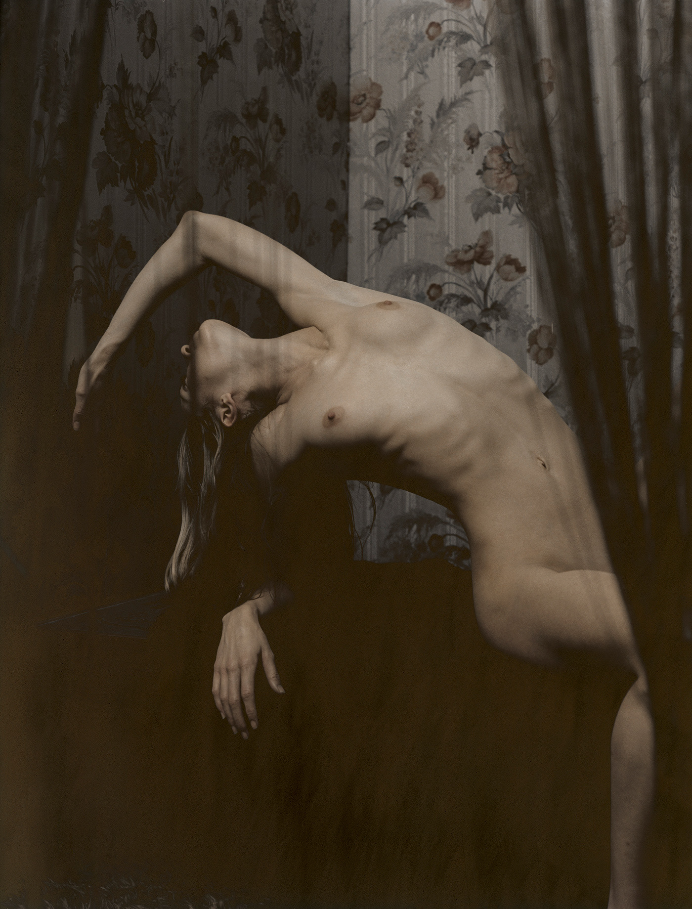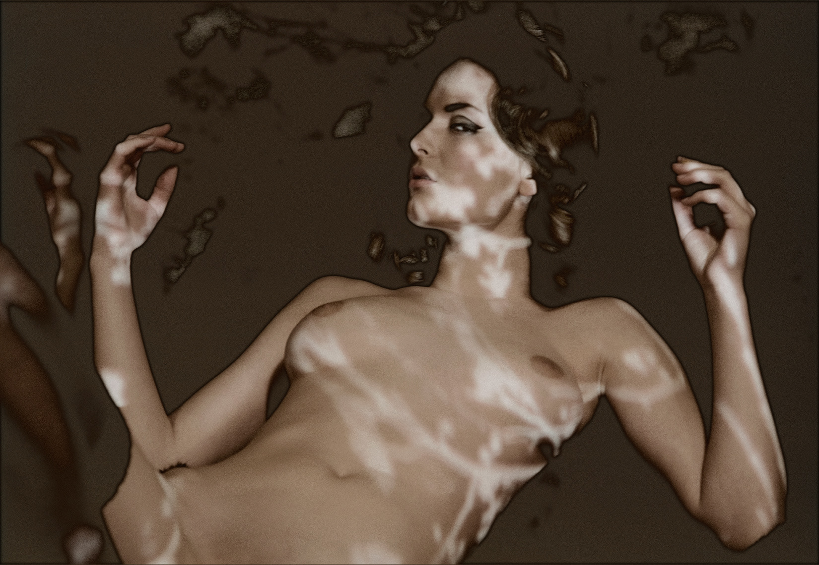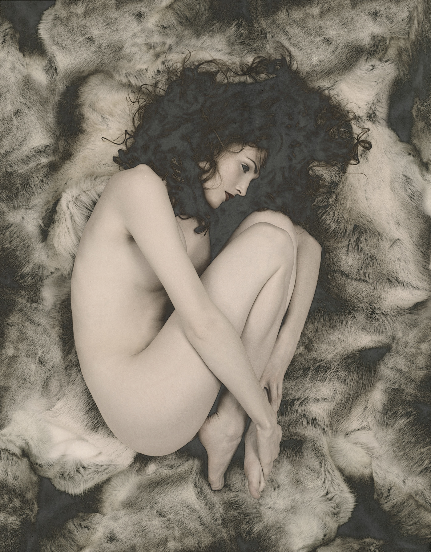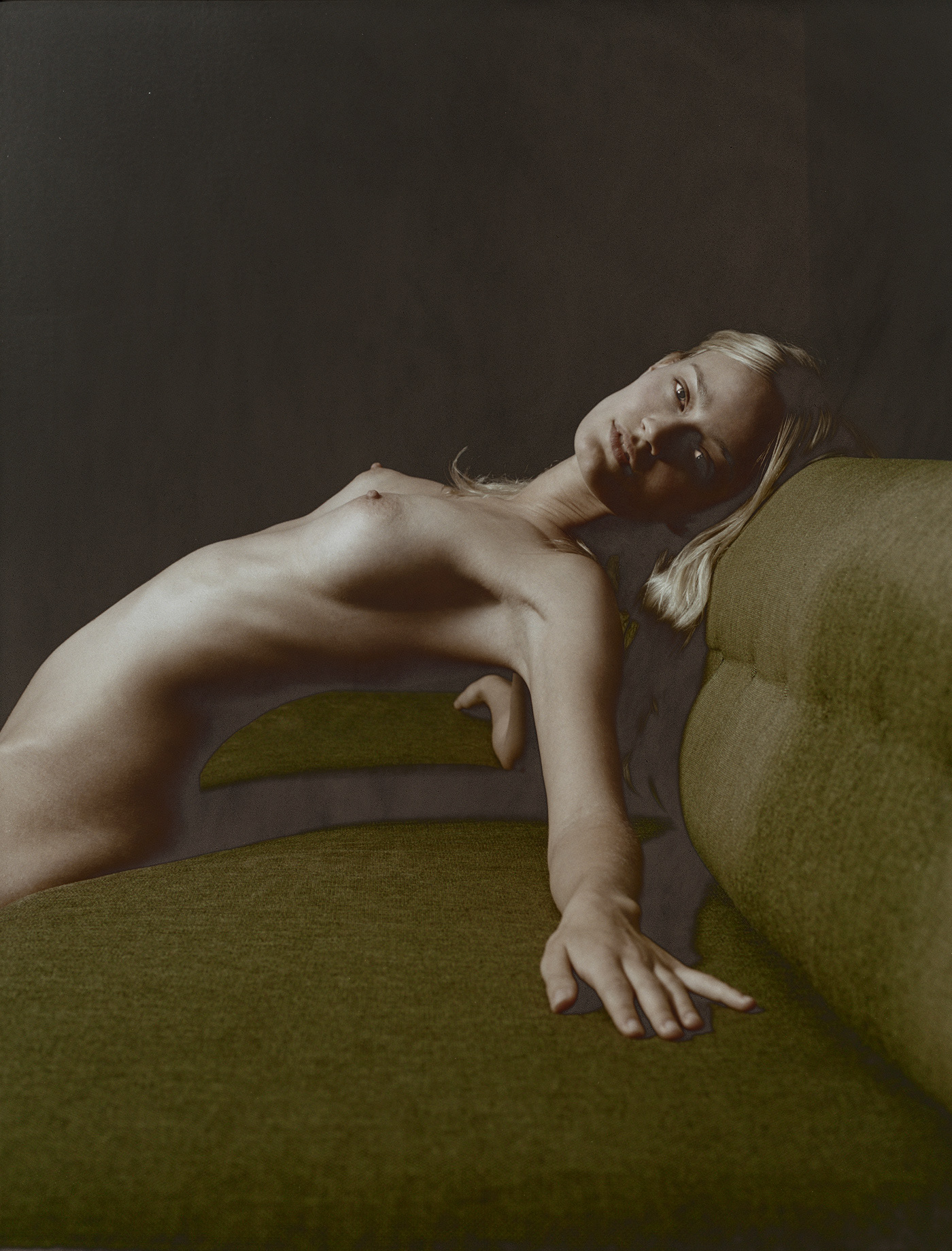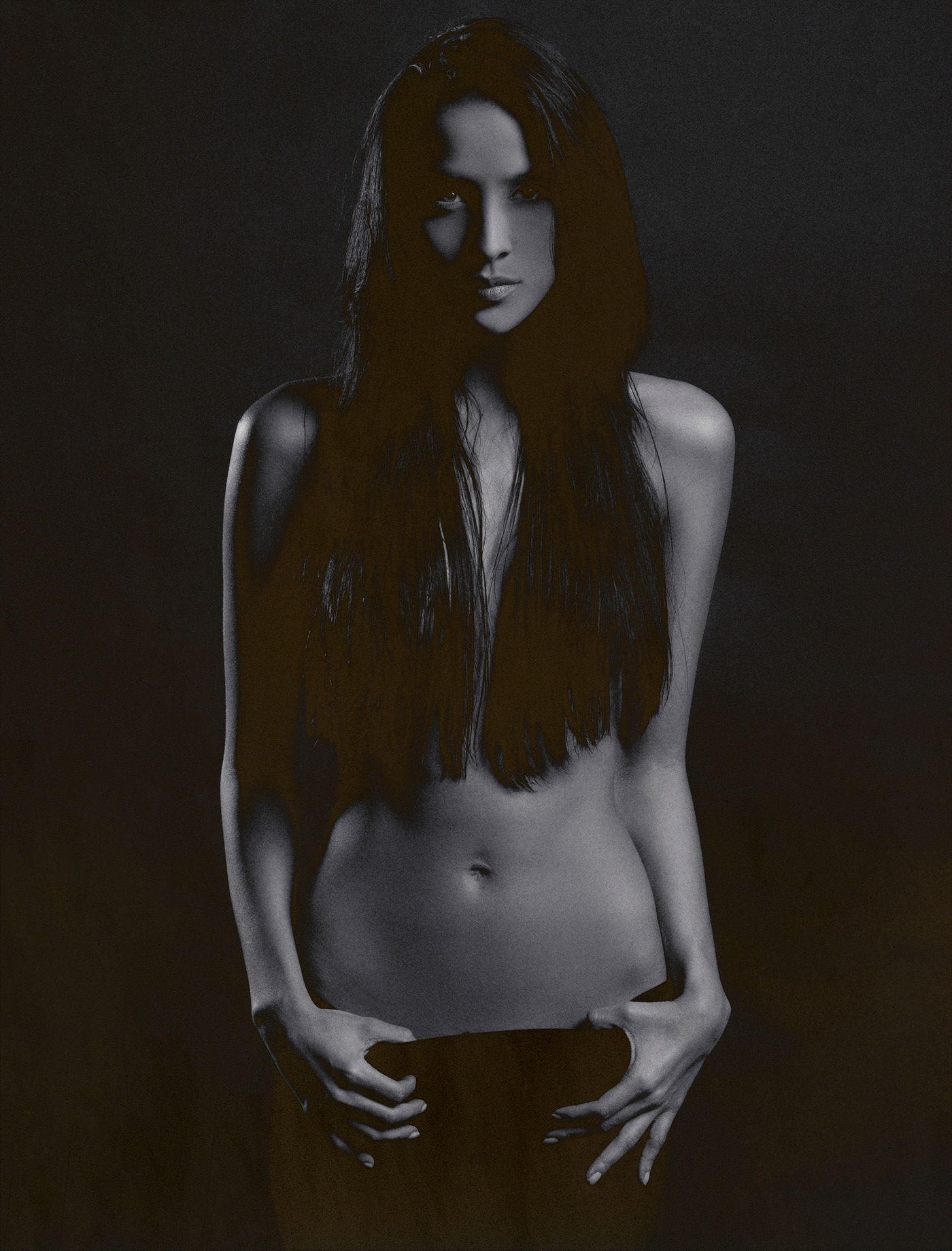 Unique darkroom technique for changing grades of shade into gold giving the nude a decent cover. Limited artprints.