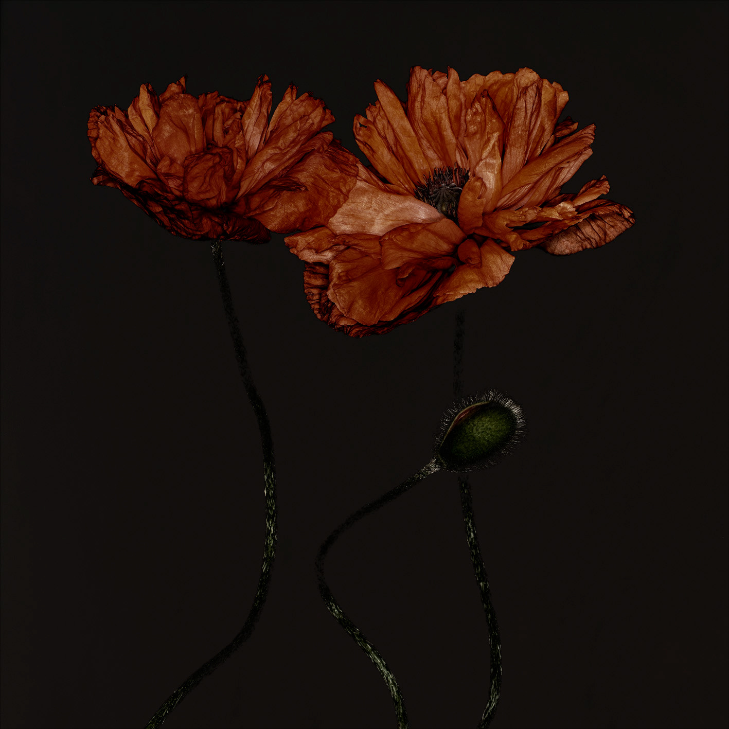 Poppies in diffent states of blooming